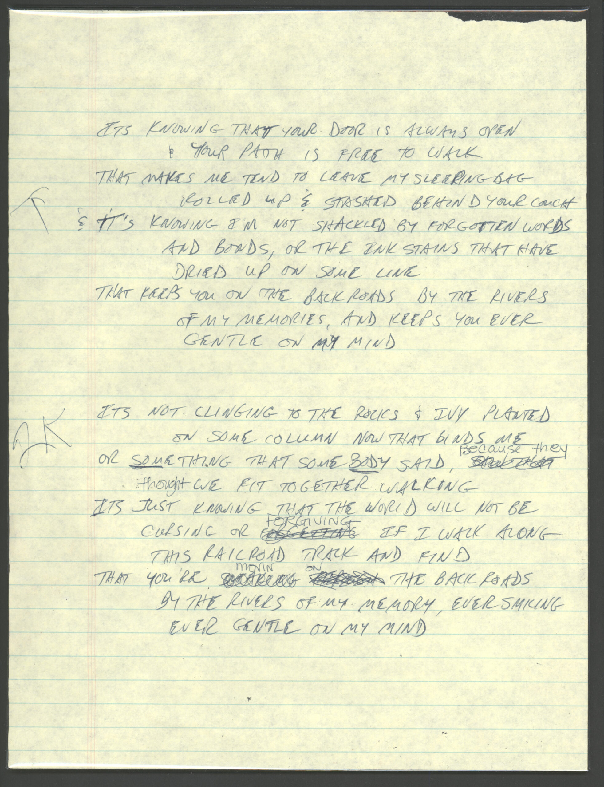 The first two photos are the original lyrics to "Gentle On My Mind," written by John Hartford. Quickly composed after a night out at the movies, it has been recorded over 400 times by a mind-boggling list of artists including Glen Campbell, Elvis Presley, Aretha Franklin, Dean Martin, Frank Sinatra, Bing Crosby & Count Basie, [...]